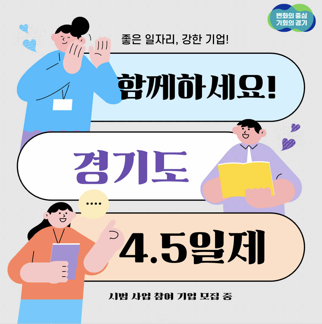 지금 경기도에서는 주 4.5일제 시범사업에 참여할 중소기업과 근로자를 모집 중이며,