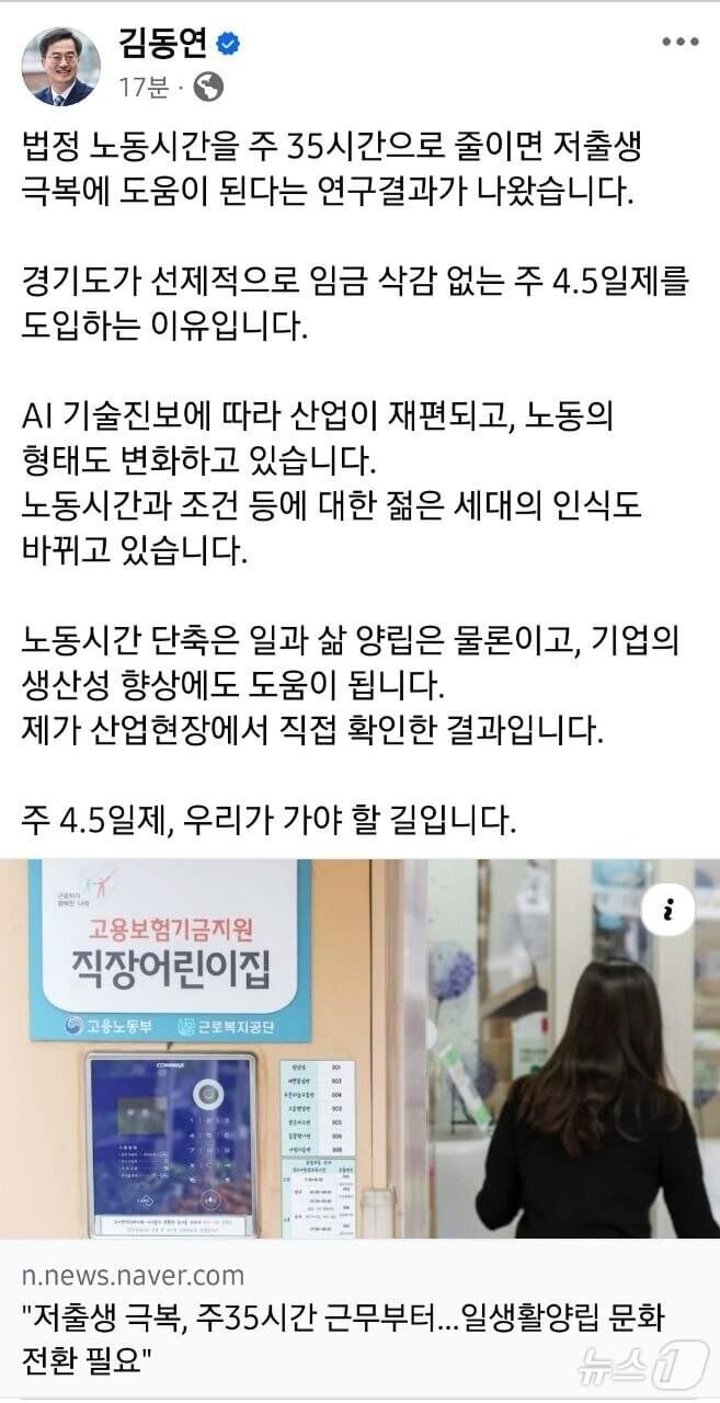 ‘주 4.5일제’는 주말을 금요일 오후부터 시작할 수 있는 제도로, 근무일 단축과 워라밸 향상을 목표로 경기도가 시범 운영 중입니다.